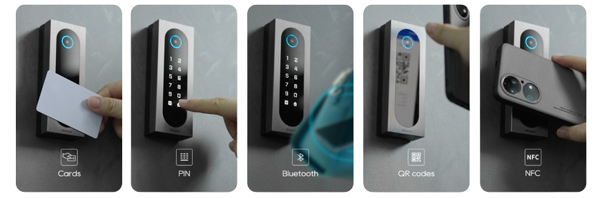 A08, kapı giriş kontrolünü çoklu geçiş sistemleri ile güçlendiren IP tabanlı bir geçiş kontrol cihazıdır. Cihaz üzerindeki kamerayla QR kodunuzu okutarak, Akuvox Smartplus uygulaması sayesinde akıllı telefonlarınızdan Bluetooth fonksiyonunu kullanarak, dokunmatik tuş takımı sayesinde PIN kodu girerek, RFID kart okutarak veya NFC teknolojisi üzerinden mobil telefon ile zengin giriş kontrollerini destekler ve kullanıcılara kimlik bilgileri seçeneklerinde esneklik sunar.